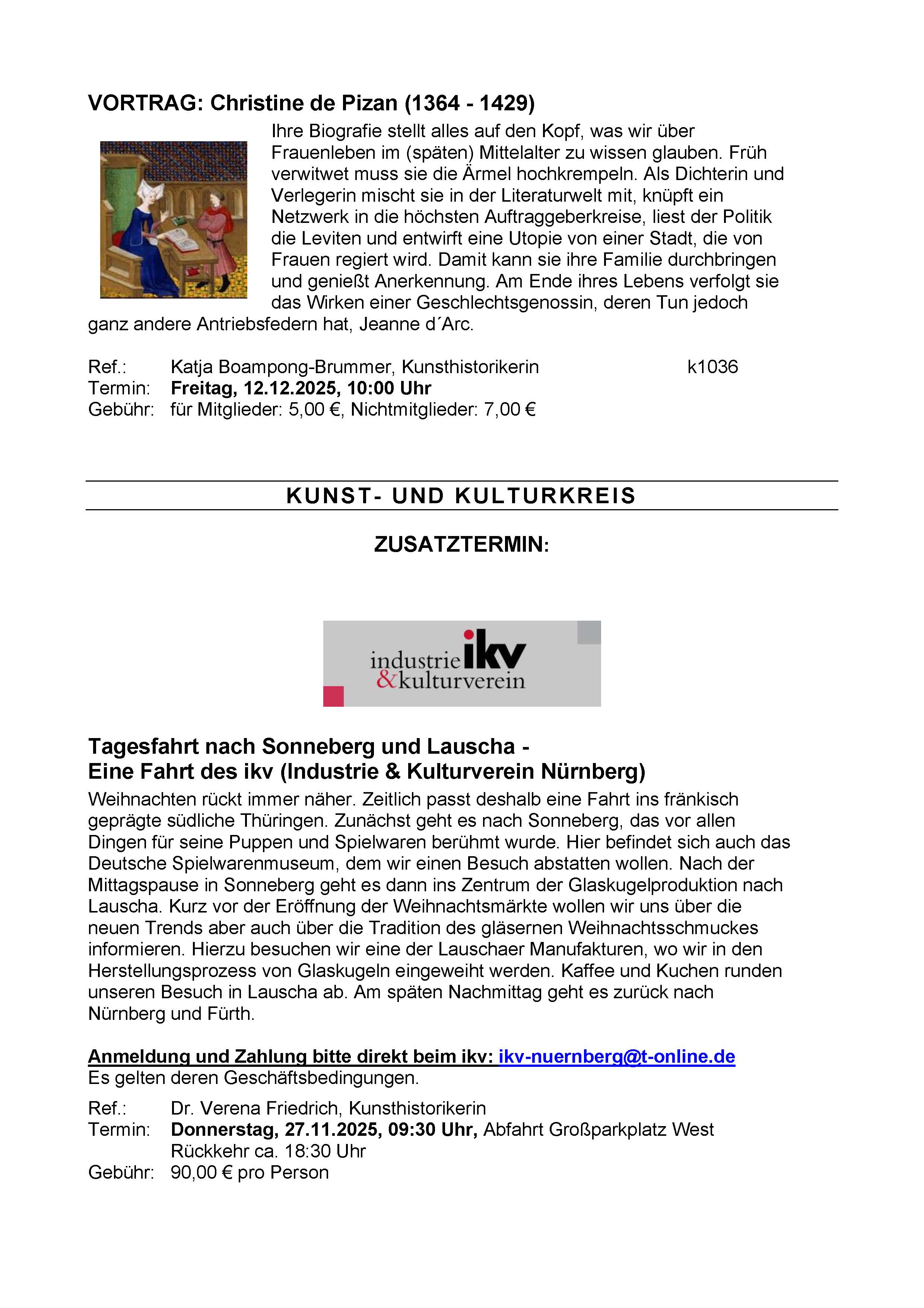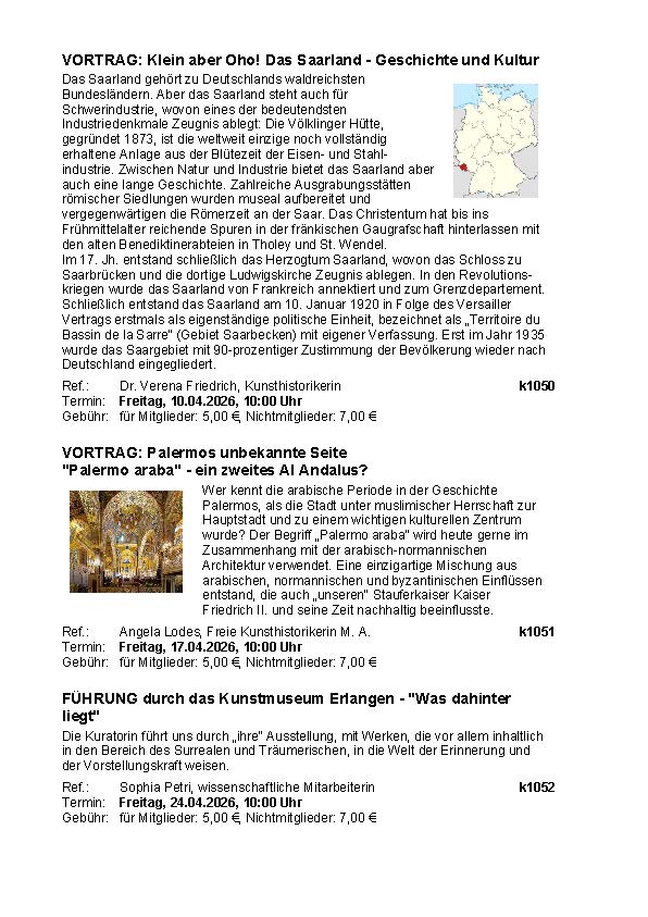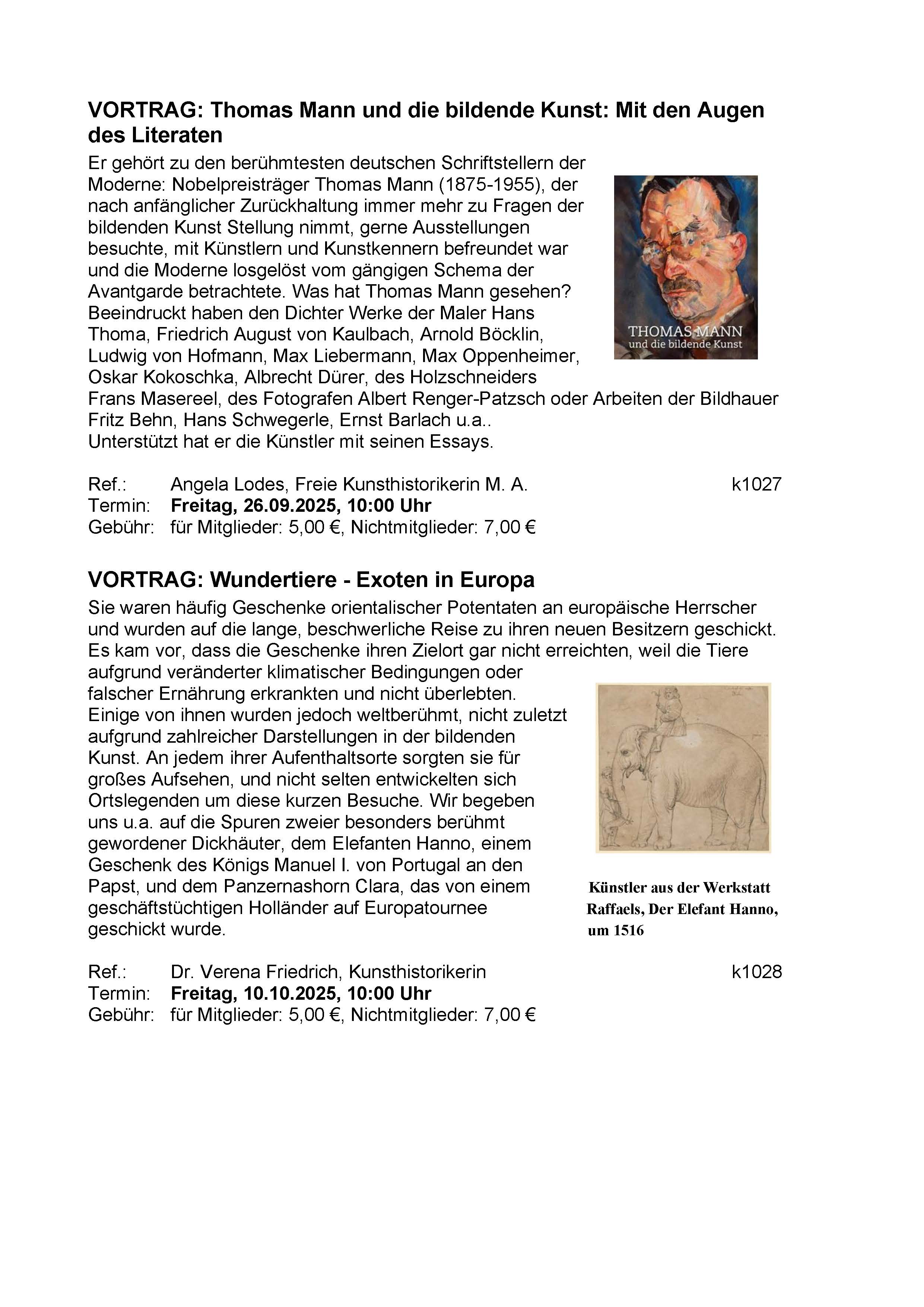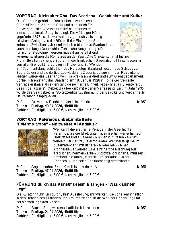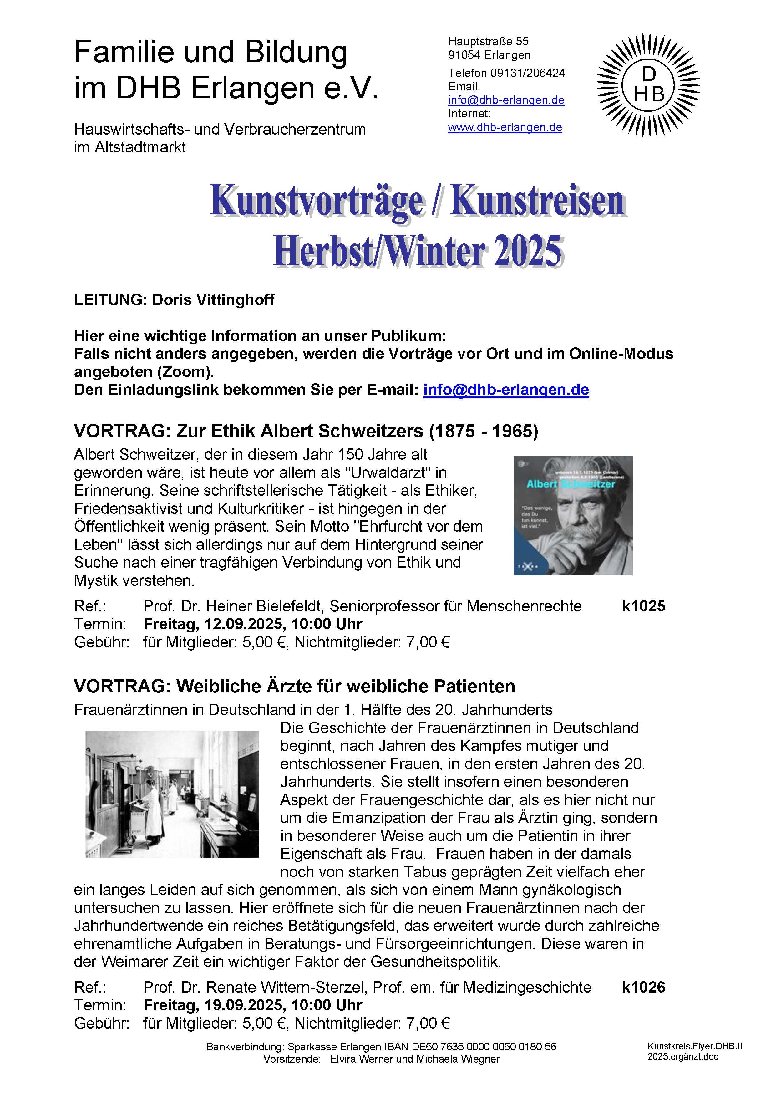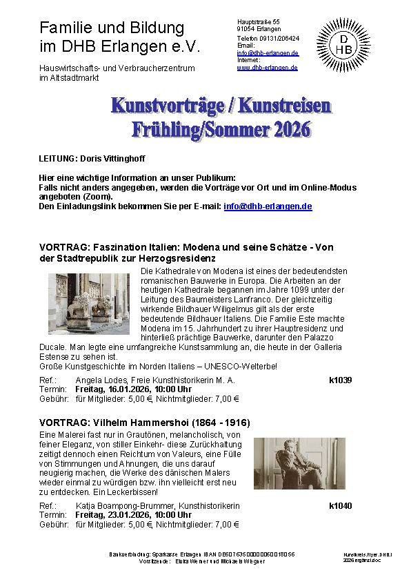Die Kunstvorträge finden in unseren Räumen im Hauswirtschafts- und Verbraucherzentrum im Altstadtmarkt statt und können auch online per Zoom besucht werden.